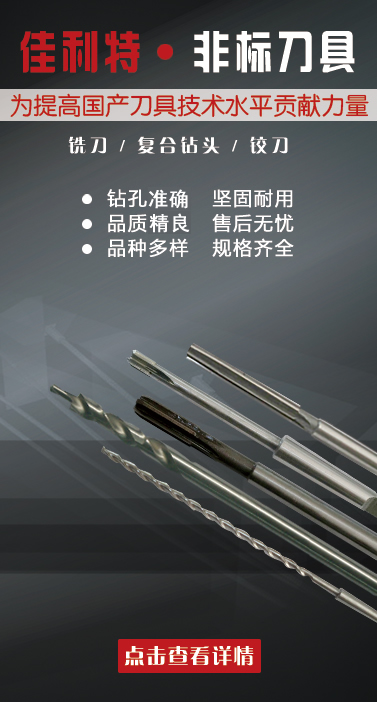 鎮(zhèn)江佳利特刀具有限公司是制造非標(biāo)準(zhǔn)特種刀具的企業(yè)。本公司主要生產(chǎn)高速鋼和硬質(zhì)合金特殊刀具。產(chǎn)品使用于機(jī)械、電子、汽車(chē)制造、塑膠、木制品等行業(yè)。公司生產(chǎn)的復(fù)合孔加工刀具、銑削刀具和成型銑刀等刀具。成為廣大用戶(hù)提高生產(chǎn)效能的途徑,深受用戶(hù)好評(píng)。公司作為制造非標(biāo)特種刀具的企業(yè)我們將致力于刀具的國(guó)產(chǎn)化,為提高國(guó)產(chǎn)刀具技術(shù)水平貢獻(xiàn)力量。無(wú)論您需要何種刀具,我們將以合理的價(jià)格為您提供好的切削刀具和完善的技術(shù)服務(wù)。非標(biāo)刀具式樣繁多,如無(wú)圖樣我們將竭力提供設(shè)計(jì)服務(wù),并快速準(zhǔn)確地交出滿(mǎn)意的刀具。[ 其它+ ]